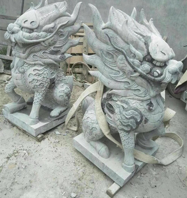 某曲陽一石材廠,客戶預定了一對麒麟石雕像,雕像高1.1米,長方形底座40*35厘米,總重量270近。這對麒麟石重量不大,下半部比較光滑沒有很明顯的棱角有利于起吊搬運。根據(jù)重量選擇2噸白色吊裝帶正好可以從下半部分穿過進行兜吊。這里需要注意大型施工現(xiàn)場是不讓使用白色吊裝帶的其原因可以翻看前面的文章。