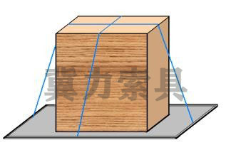 或者采用“+”字捆綁法,捆綁時要求兩條栓緊器織帶的交叉點與貨物頂面的四角對角線的交點相吻合,橫向與縱向的栓緊器織帶位于貨物各邊的中英部位,是對貨物的限制力量較佳位置。