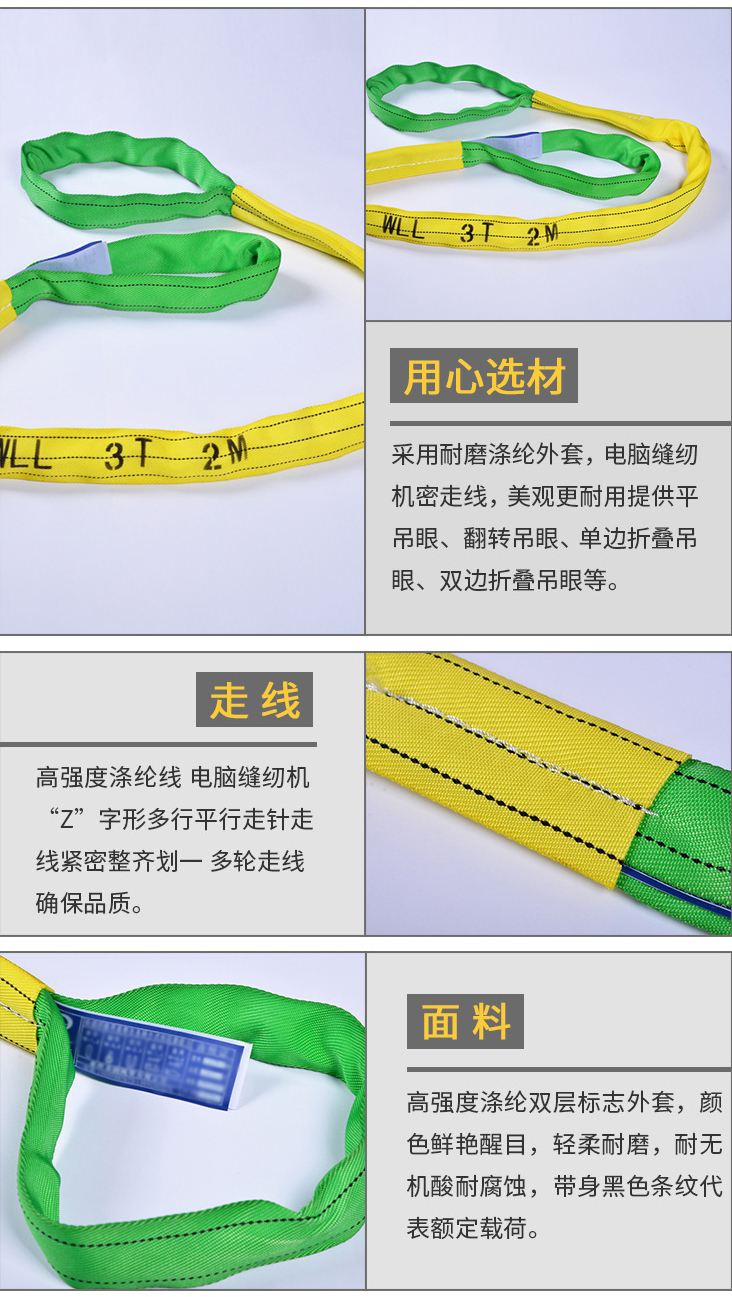 吊裝帶應(yīng)正確放置,以安全的方式連接到物品上。并###吊裝帶與物品連接的地方伸平,以便吊裝帶在寬度方向均勻承載,吊裝帶不應(yīng)搭接或彎曲。