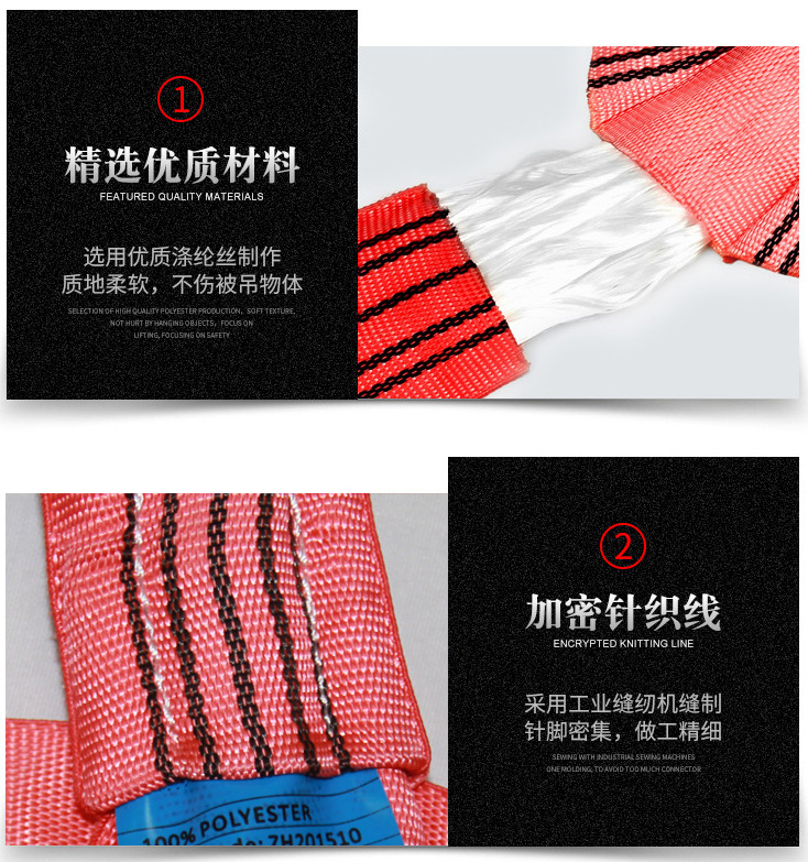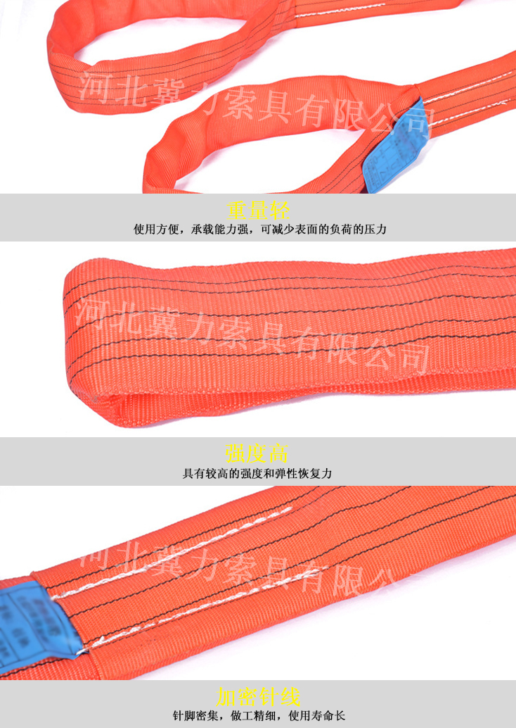 外層為特制的雙層耐磨套管對接成環(huán)形,吊帶的外套管不承重,只對平行排列的絲束起保護(hù)作用,在嚴(yán)重超載或經(jīng)長期使用造成承載芯有局部損傷時,其外套會首先斷裂示警可避免事故的發(fā)生。吊裝帶的維護(hù)非常簡單,因撞擊而造成損害的在吊裝作業(yè)中是很普遍發(fā)生危險的,而柔性吊裝帶在強(qiáng)烈撞擊下只會扁平化,所以化險為夷。